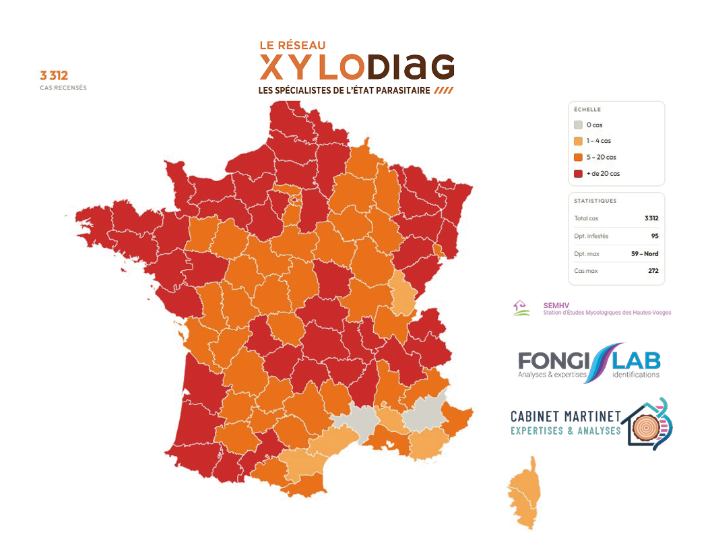 Cette nouvelle cartographie, basée sur des milliers d’analyses, montre une progression significative du champignon sur l’ensemble du territoire. Des milliers de cas ont été recensés ces dernières années, avec une augmentation constante. La mérule est désormais présente dans une grande majorité des départements, ce qui confirme que le risque n’est plus limité à certaines zones spécifiques.